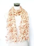 Chiffon Fashion Bubble Crocheted Red Baby Floral Print on Peach - Long Silk Scarf with Ruffle Trim 20" x 68" : Womens Scarves